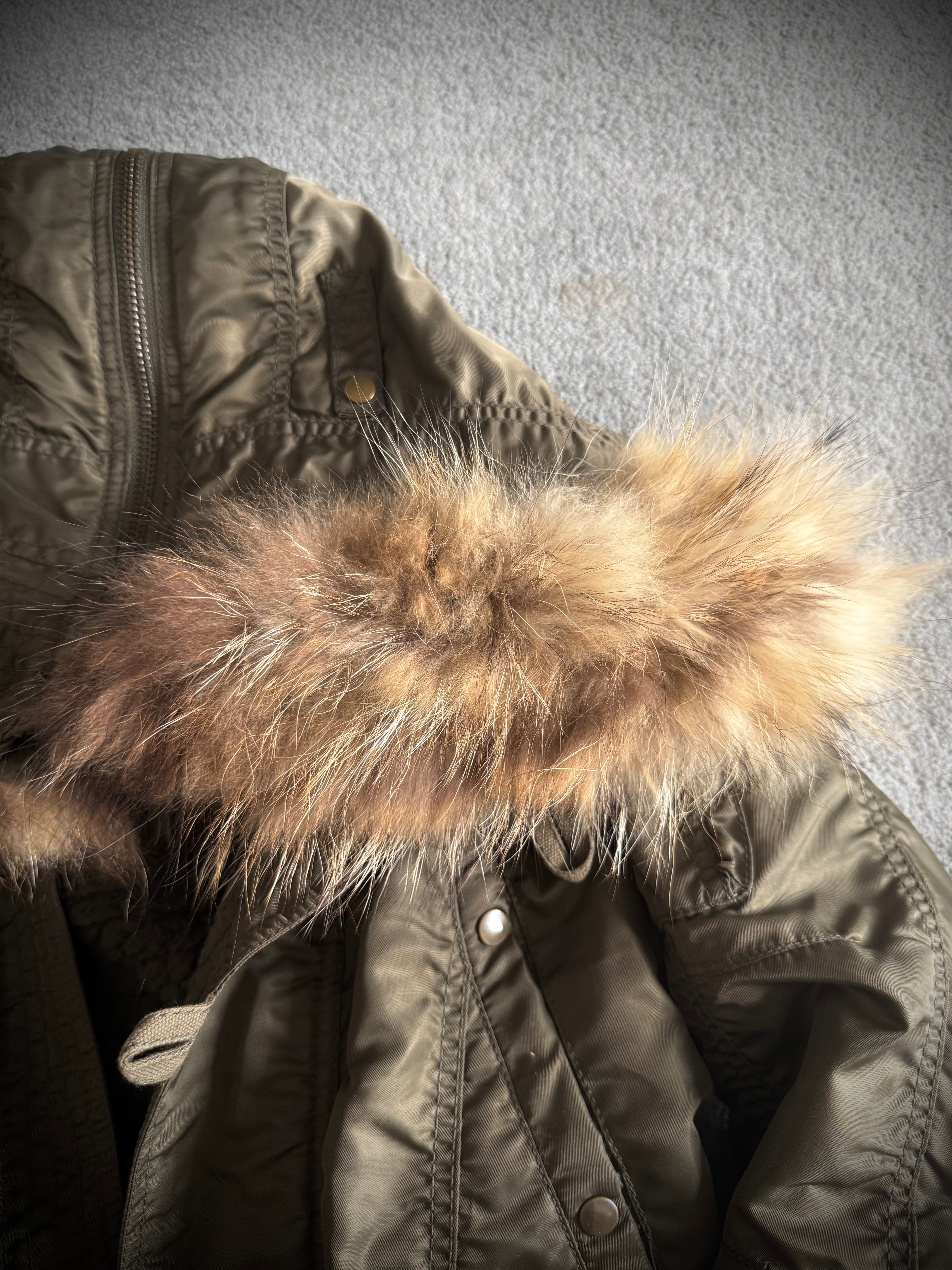 G.O.A Raccoon split fur coat wool interior