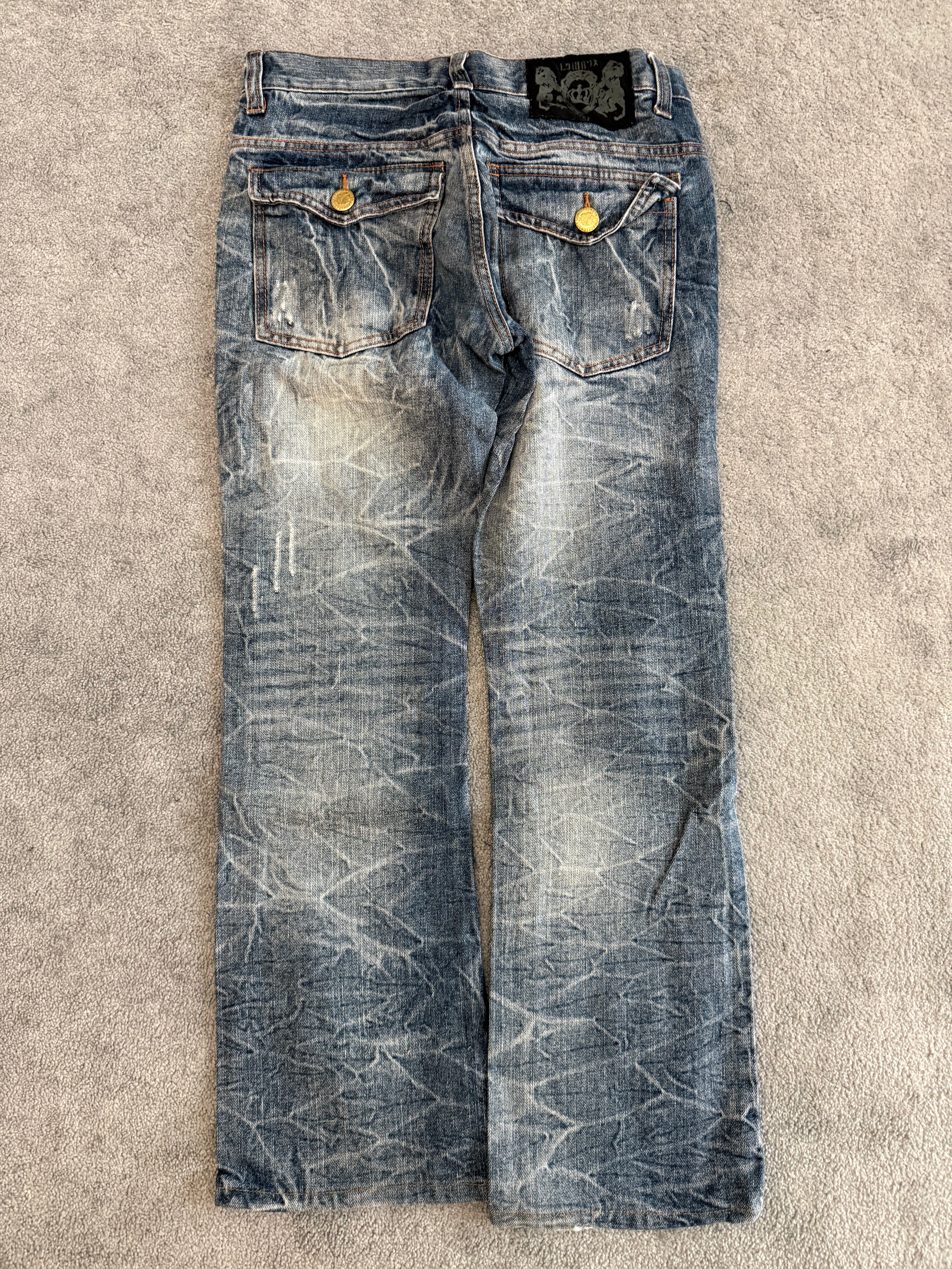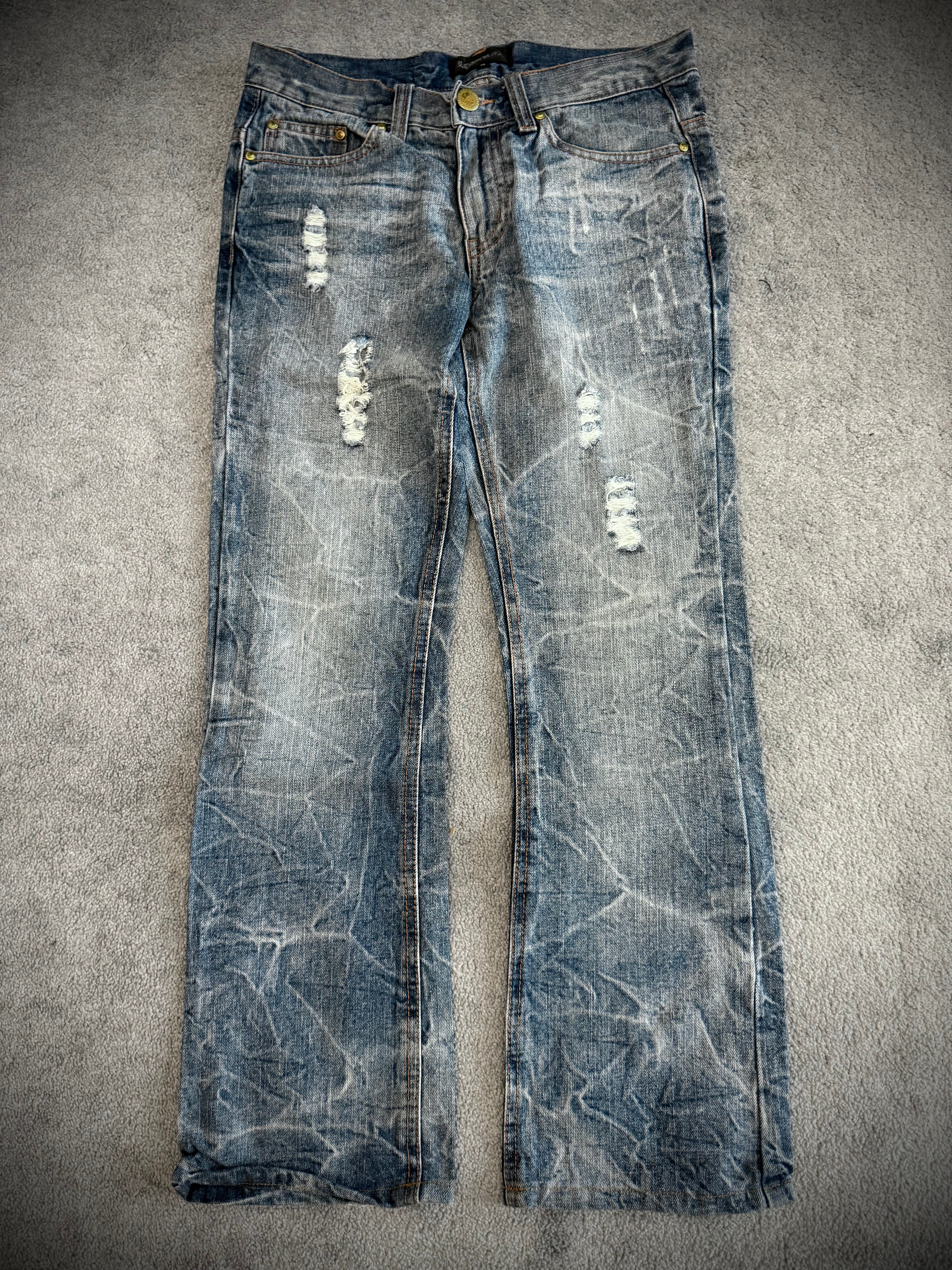 Lowbox distressed Clawmark flared denim