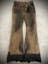 Obelisk Waxed Leather Detailed Flared Pants