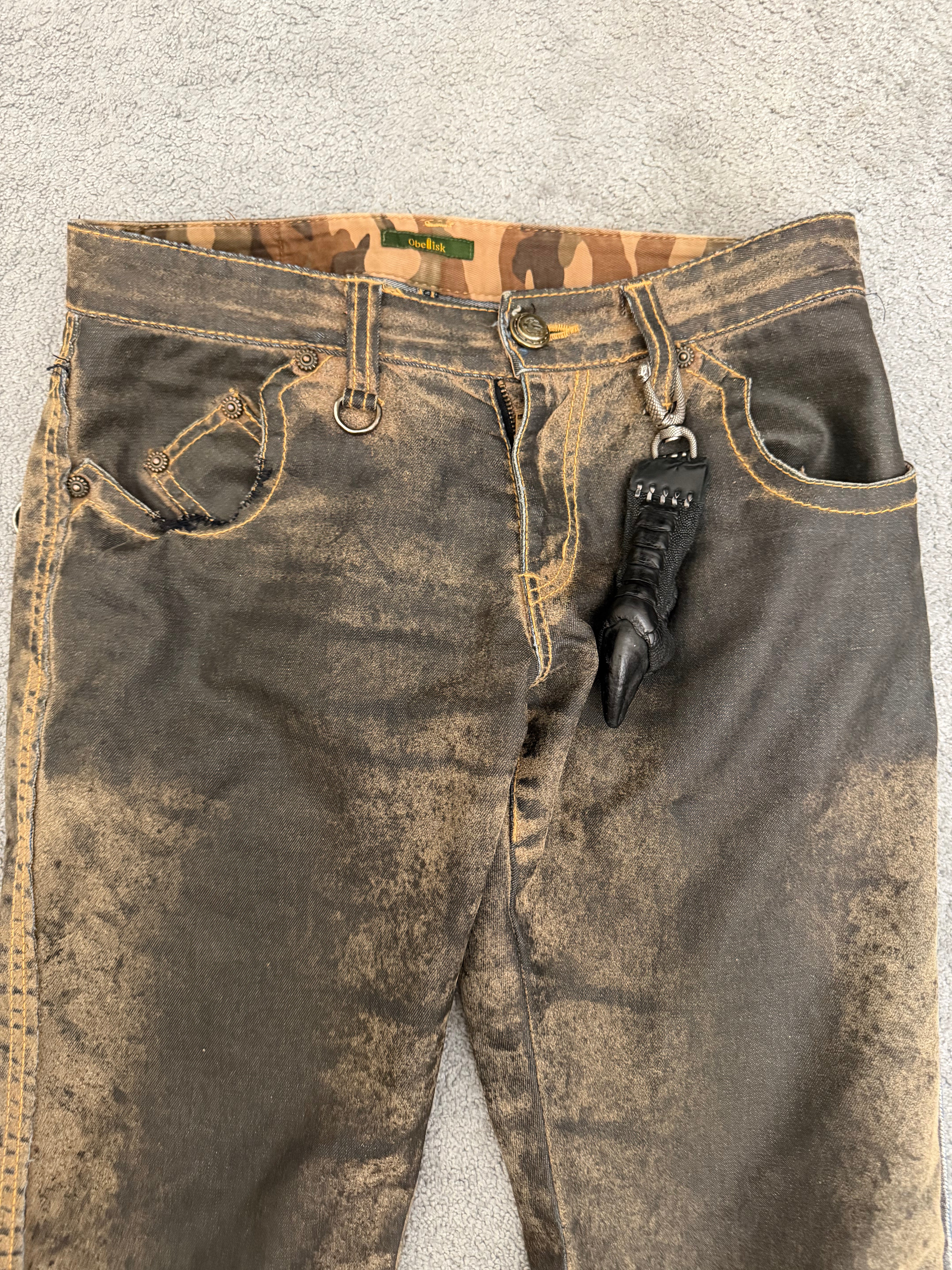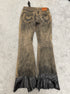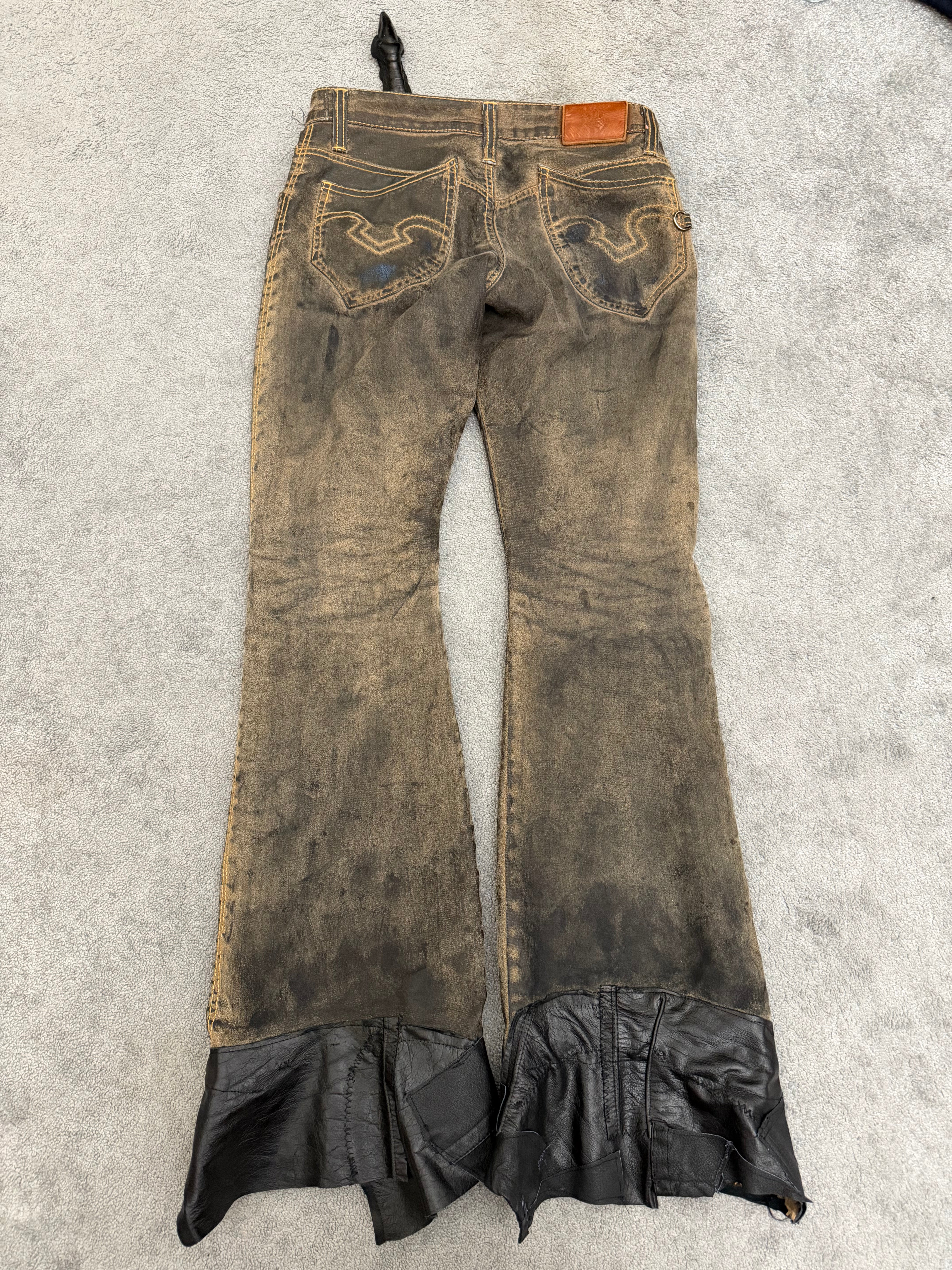 Featuring waxing and leather details at the hem. The flared cut on those are just so perfect.