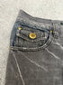 These flared jeans from black baccara features micro distressing along with flap pockets on the back and a beautiful stone wash.