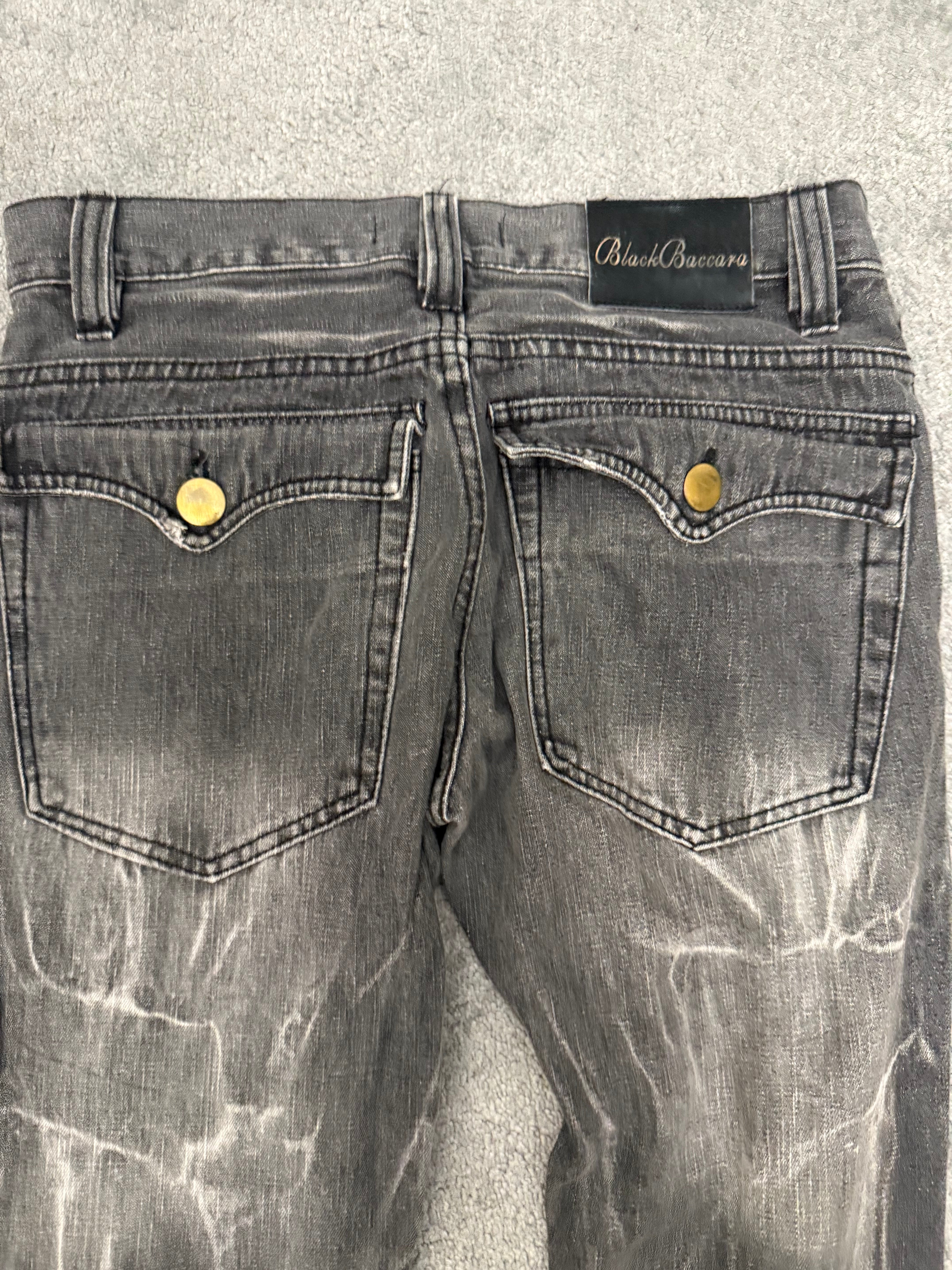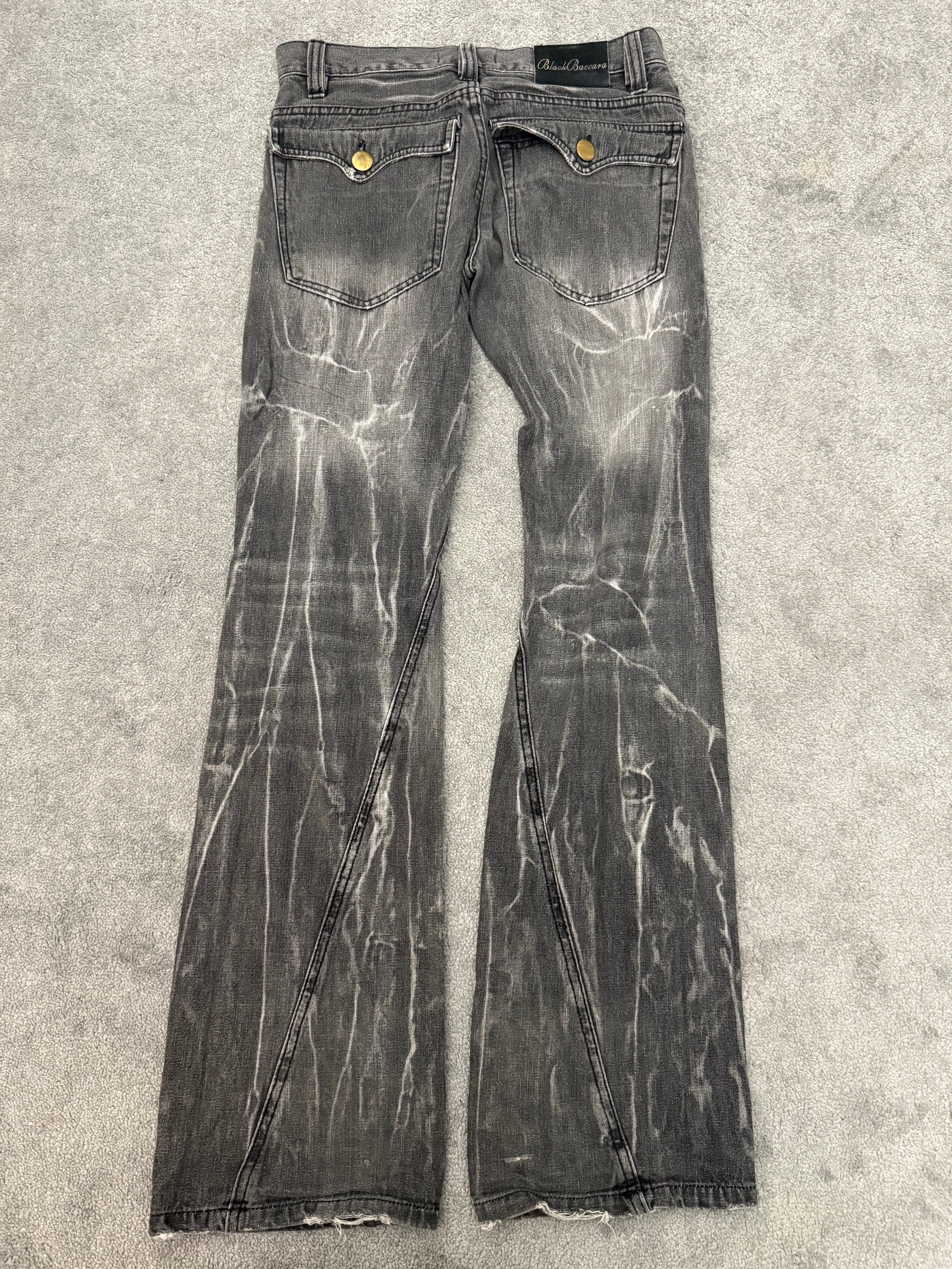 Black Baccara Distressed spiral flared Pants